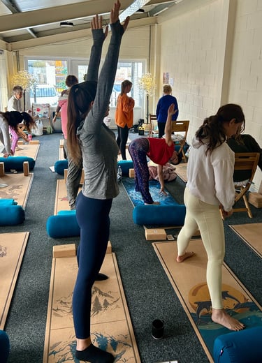 The yoga classes are based on Hatha and Vinyasa yoga, incorporating somatic movement, linking breath to movement and flow, and options are given to allow all abilities to join.